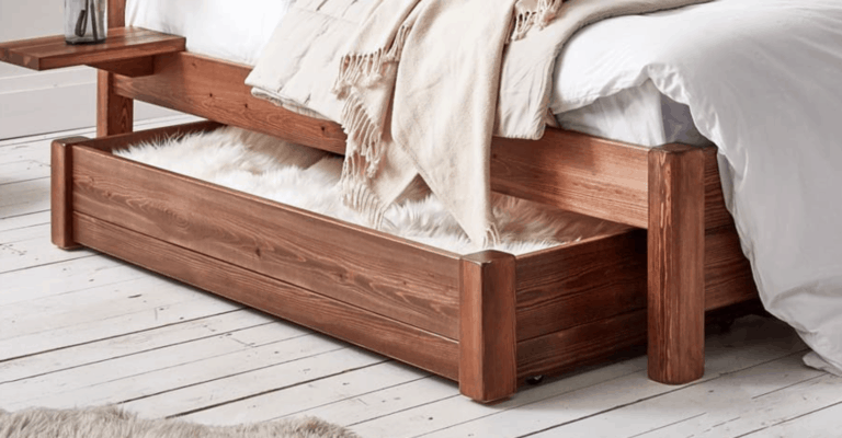 Some people don’t have enormous living spaces. If you’re one of them, there’s a bunch of blanket storage ideas to try. Invest in a custom bed with a storage drawer.