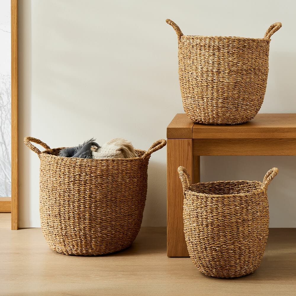 Here, the rattan blanket basket keeps spare pillows and blankets within easy reach. Also, it acts as a decor piece due to its attractive appearance.