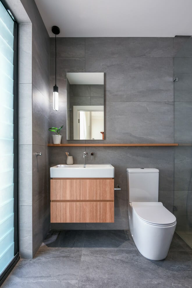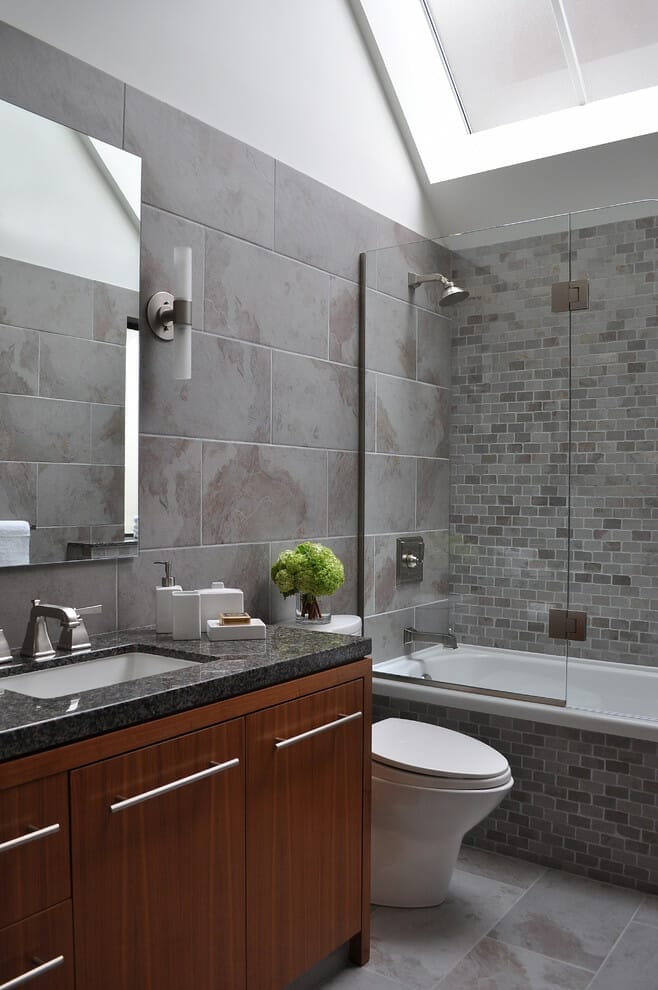 The deal in this bathroom is to use three distinctive shades of matte natural gray. Certainly, different than the other small gray bathroom ideas.