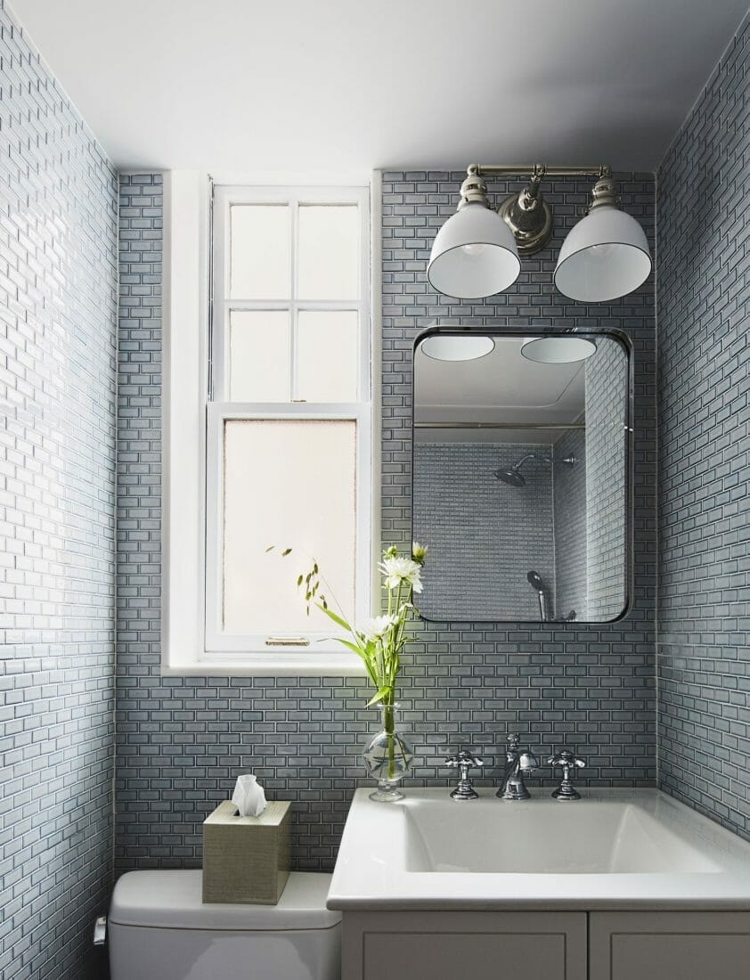 Small gray bathroom ideas to come are as seen in this picture. Implemented on the wall using subway tiles, gray makes the space looks chic.