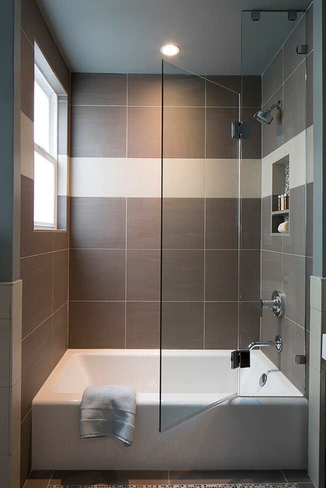 Apply this small gray bathroom idea to get the same, if not better, result. The deal is to utilize 1×4 flooring tiles.