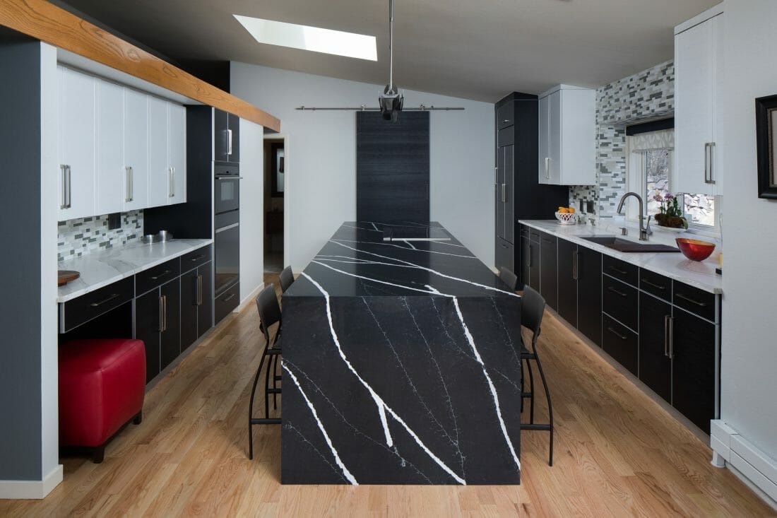 16. Black Asymmetrical Center Island Among Subtle Colors