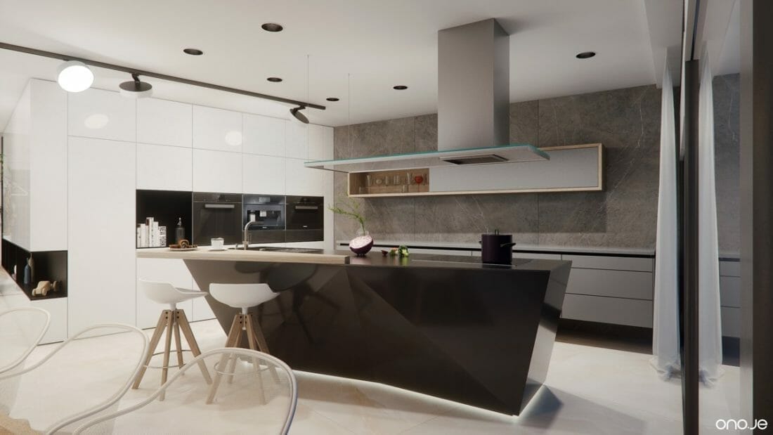 If you already have a modern kitchen with subtle hues on the walls, floor, and ceiling, it would be better to choose a black kitchen island to make it more well-spotlighted.