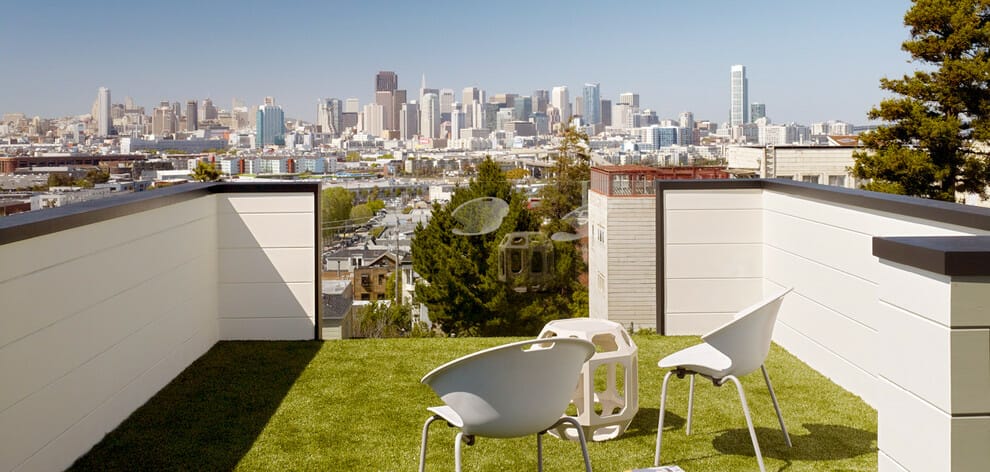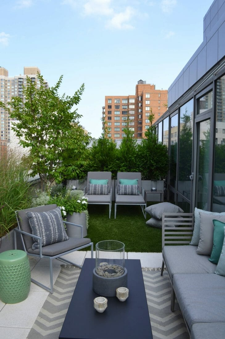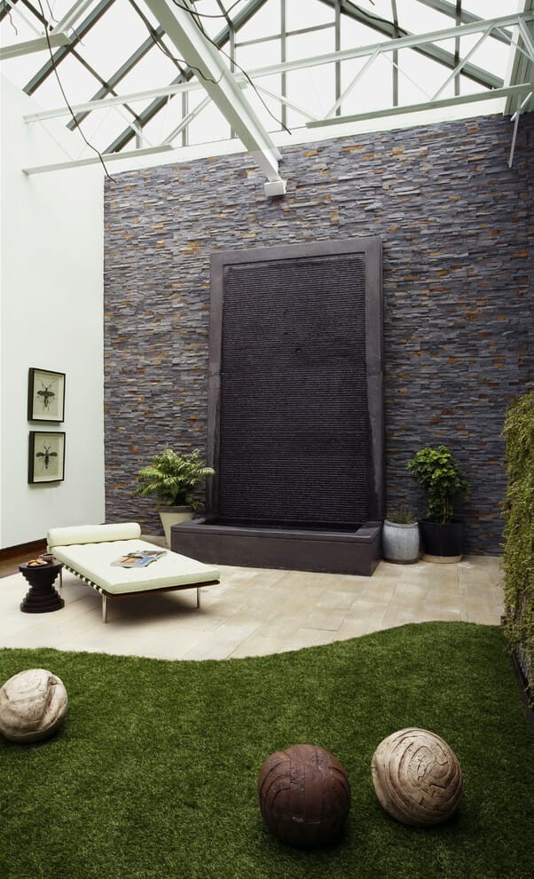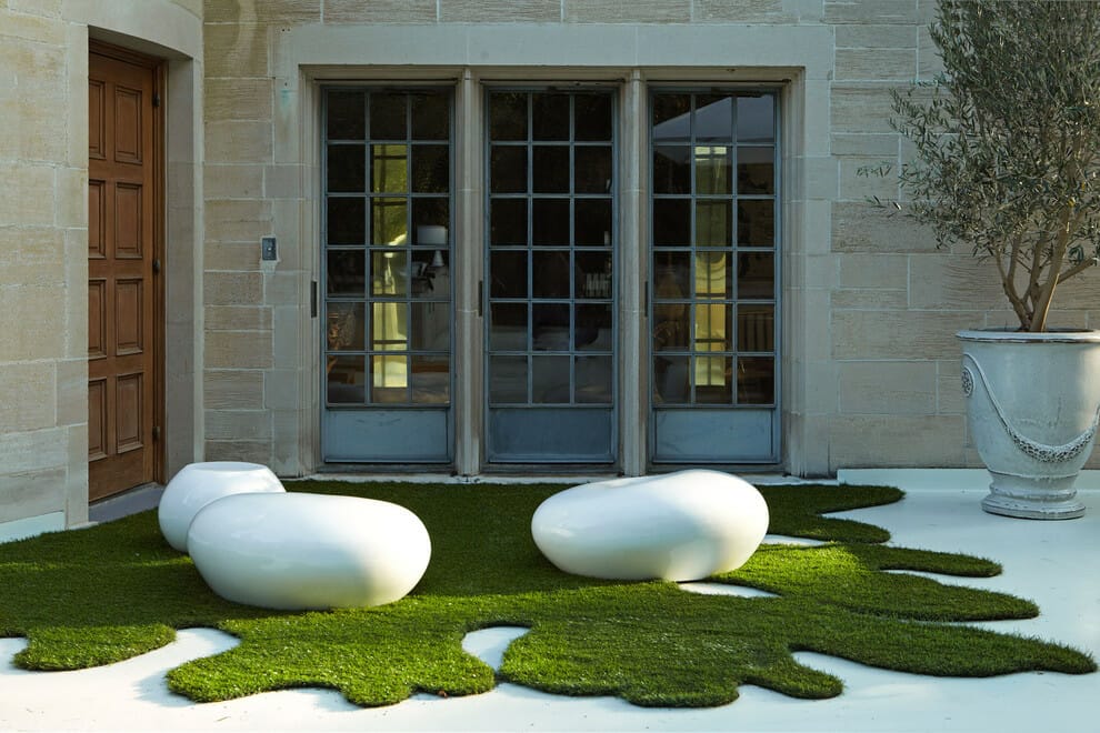 5. Patio in white Flooring and Fake Grass Decoration Ideas