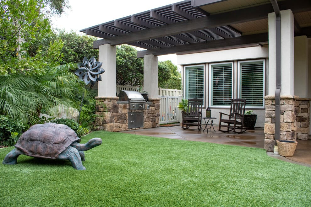 Let us move to the functionality aspect in this section. A couch in the backyard with turf is the most important of all.