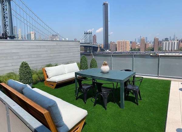 17. Artificial Grass Rug with Shrubs and Dining Space in The Center