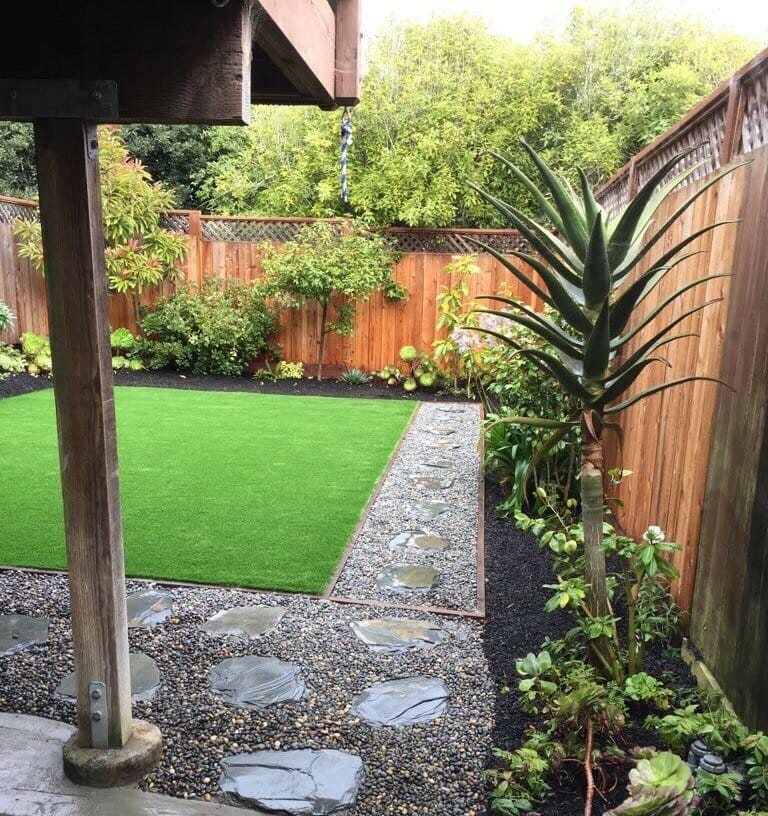 Small backyard turf ideas with quarter sections that appear with granite pathways will be exciting to adopt.