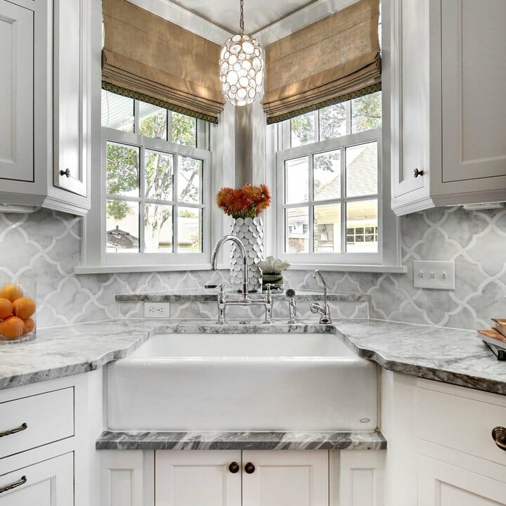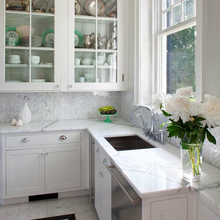 What’s not to love about marble subway tiles? Not only do they seem appealing but also trendy. Also, the pieces go fantastically with white cabinets.