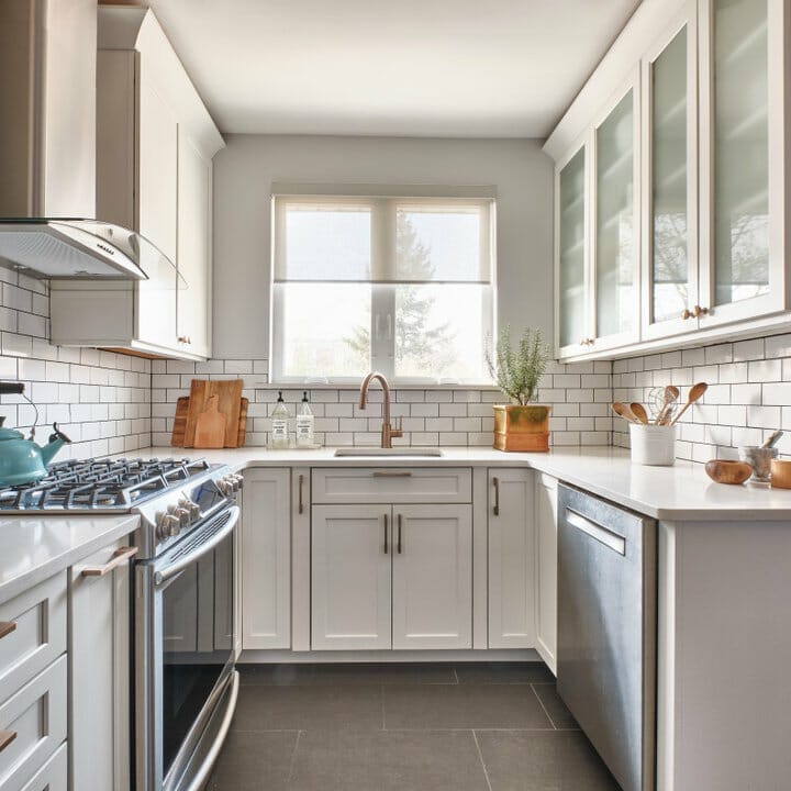 4. White Subway Tile with White Cabinets