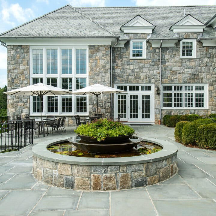 Bluestone has always made a great patio. It offers texture and subtle bluish color to space. And the staggering finish creates a smooth transition to the lawn.