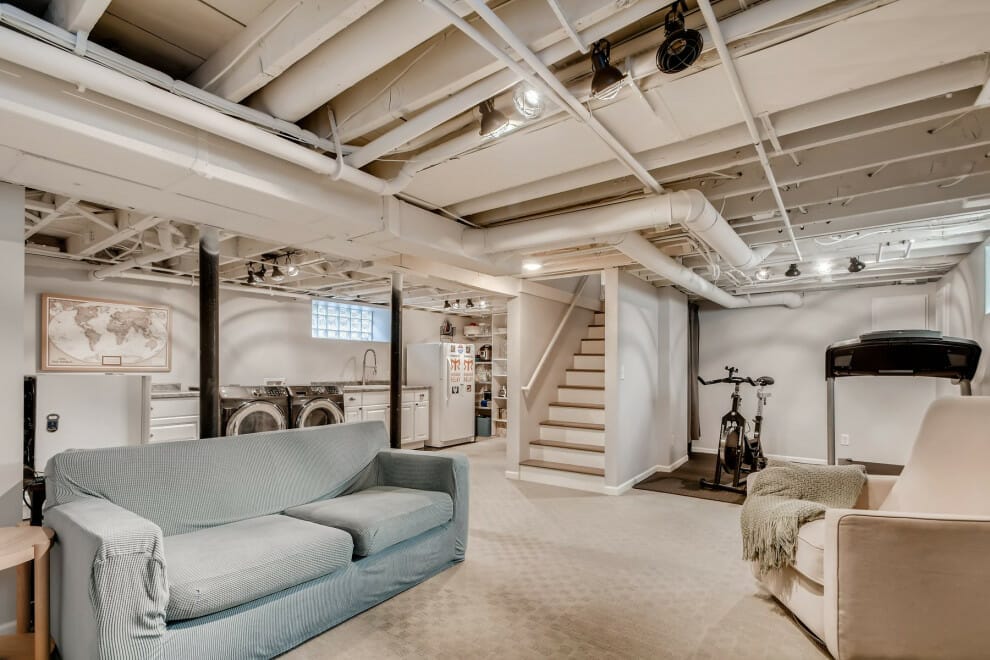 White becomes one of the most preferred exposed basement ceiling colors for a reason. Its neutral hue makes it easier for homeowners to decide the rest of the décor.