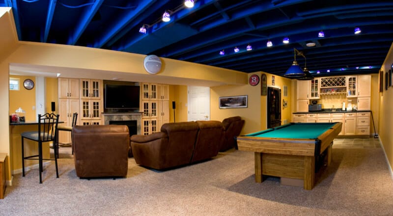 Dust balls and cobwebs may appear more notable with a black ceiling. Nevertheless, this can make your basement a bit comfier since it lets the furnishings stand out.