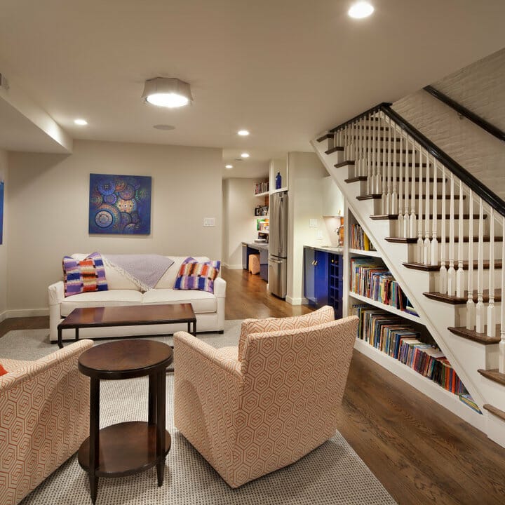 Further, you can also turn the section under your basement stairs into a cabinet to store your books.