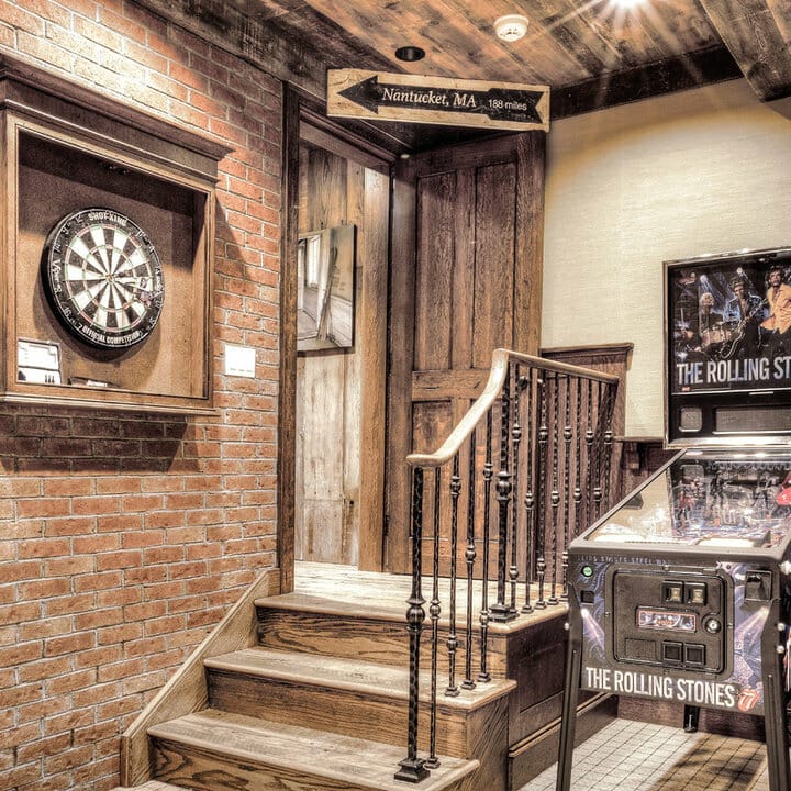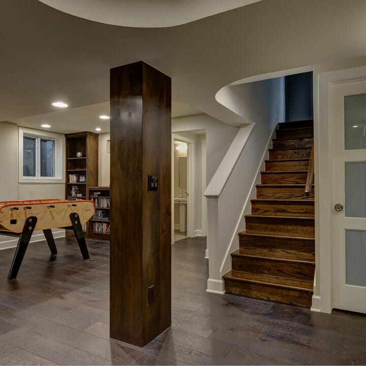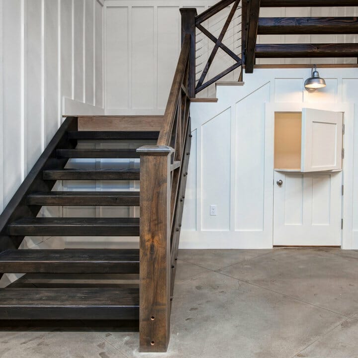There’s nothing more perfect than equipping your farmhouse or coastal-themed underground floor with wall paneling. You can even confidently install it around your entire basement stairway.