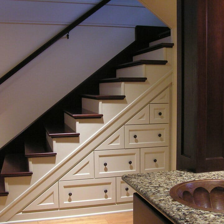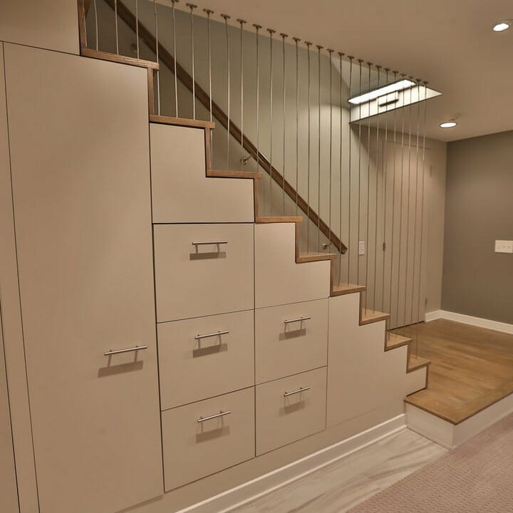 After shelves and laundry room, you can also now have drawers under your basement stairs.