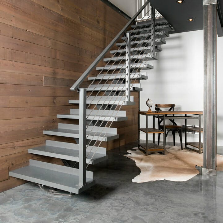 8. Open Staircase to Basement Ideas in Industrial Theme