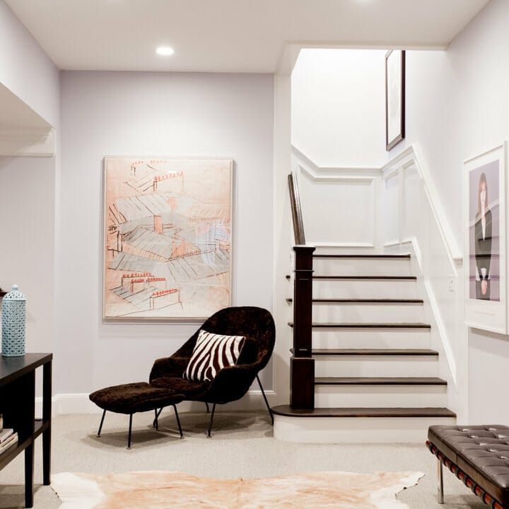 The basement stairs with a combination of dark wood and white flooring will be more stunning if you also hang wall arts along the stairway. Whether it’s big or small, it’s all pleasing to the eye.