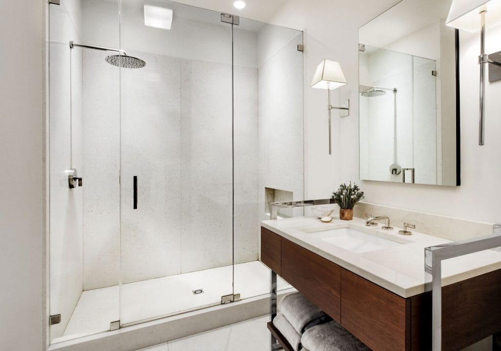 Place towels and vases on gorgeous shelves. Display river rocks in glass canisters. You can also invest in shower niches for adding more storage space.