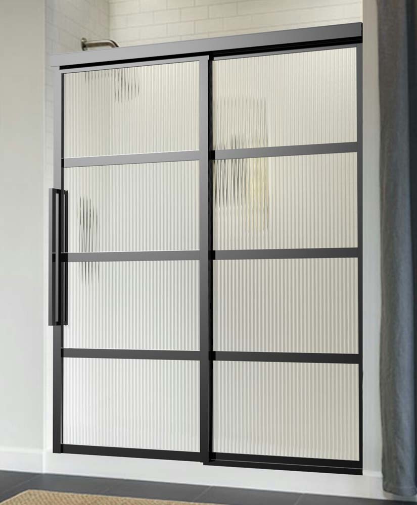 The half-frosted glass doors feature ornate stripes. They protect your privacy, while clear glass maximizes daylight.