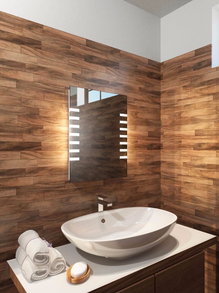 The lighted mirror carries functionality as well as minimalist appeal to the bathroom. It visually expands the space too.