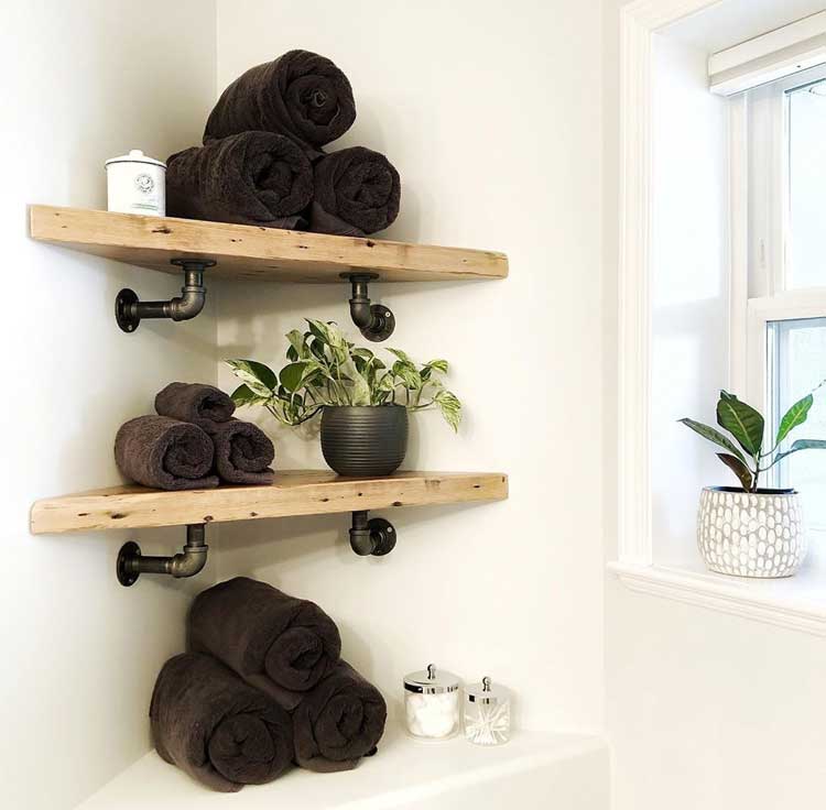 Corners can be some of the most awkward spaces in a room. Corner shelves are one way to add functionality and style for those spots without having to buy an entirely new piece of furniture or wall art. It’s amazing how something as simple as reclaimed pipes could make such a bold statement that is so perfect for our bathroom!