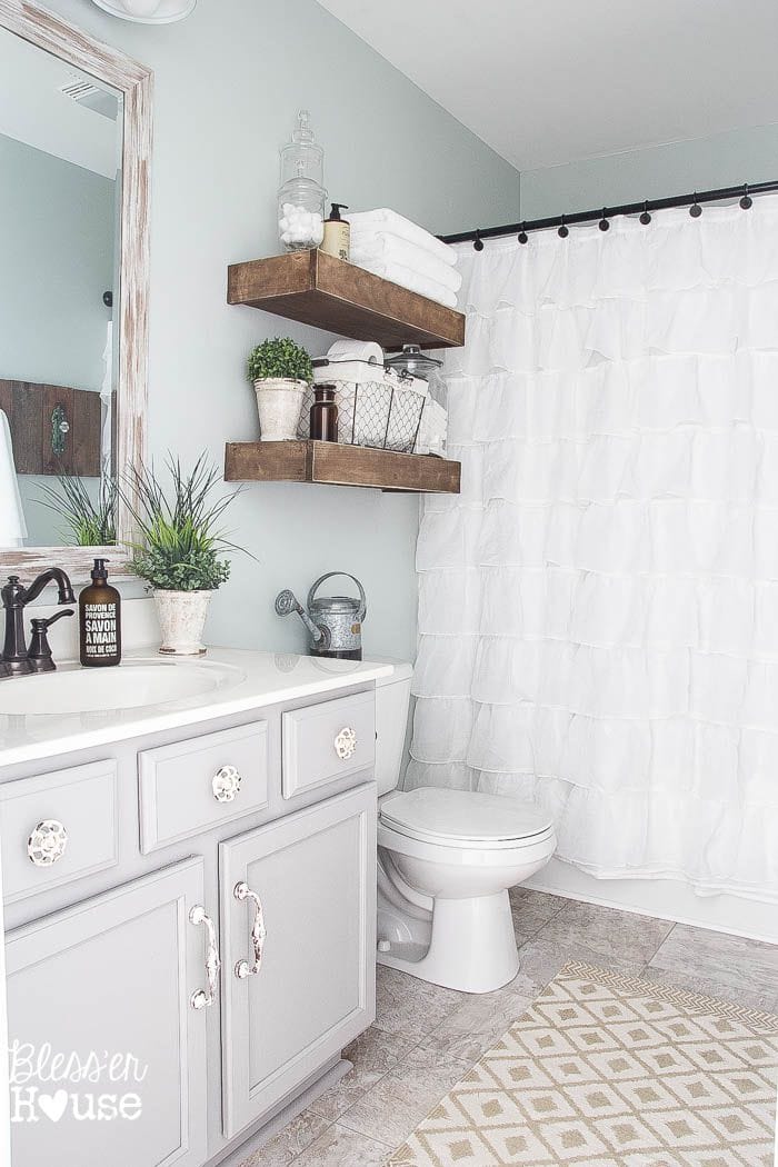 Farmhouse-inspired bathing space is popular for its homey ambiance. Not to mention, it does not break the bank since it employs repurposed items. If you love the cozy feel it provides, explore my farmhouse bathroom ideas.