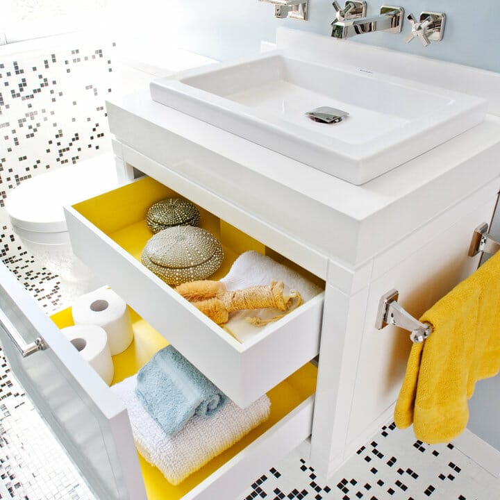 Short on space? Try sticking to neutral bathroom colors like crisp white and pale gray. They’ll make the area seem bigger as well as brighter.