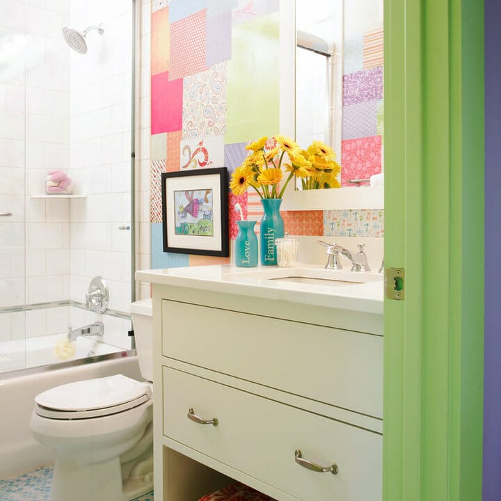 Speaking of good colors for bathrooms, don’t hesitate to use pink shades. As you see, this girl’s bathing space boasts hot pink walls. Not only do they inspire playfulness but also impart a feminine appeal.