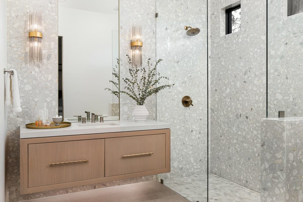 Abstract tiles, especially those made of marble, are never wrong in giving texture to your bathroom.