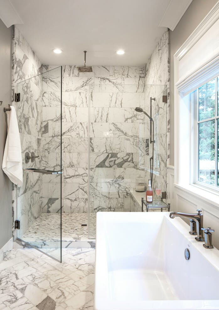 12. Marmoreal Mosaic Tiles to Highlight the Walk-In Shower
