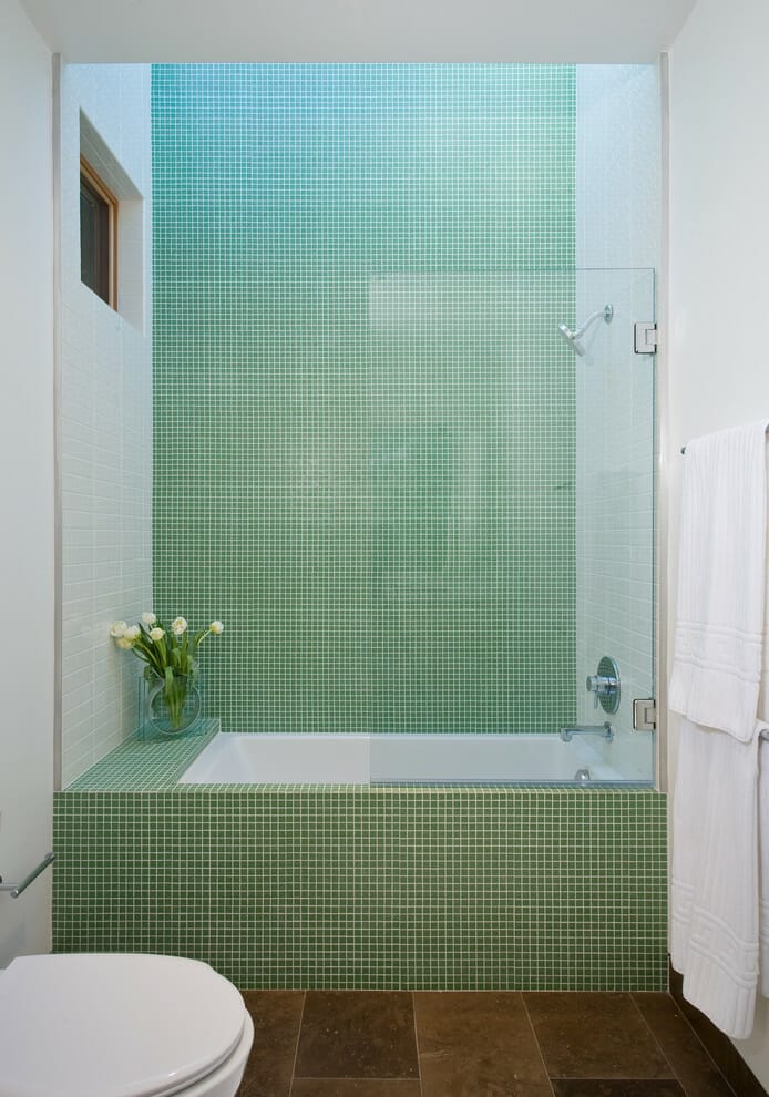 Instead of changing the whole bathroom decor, it would be better to only install these green tiles on the built-in tub as well as one side of your wall.