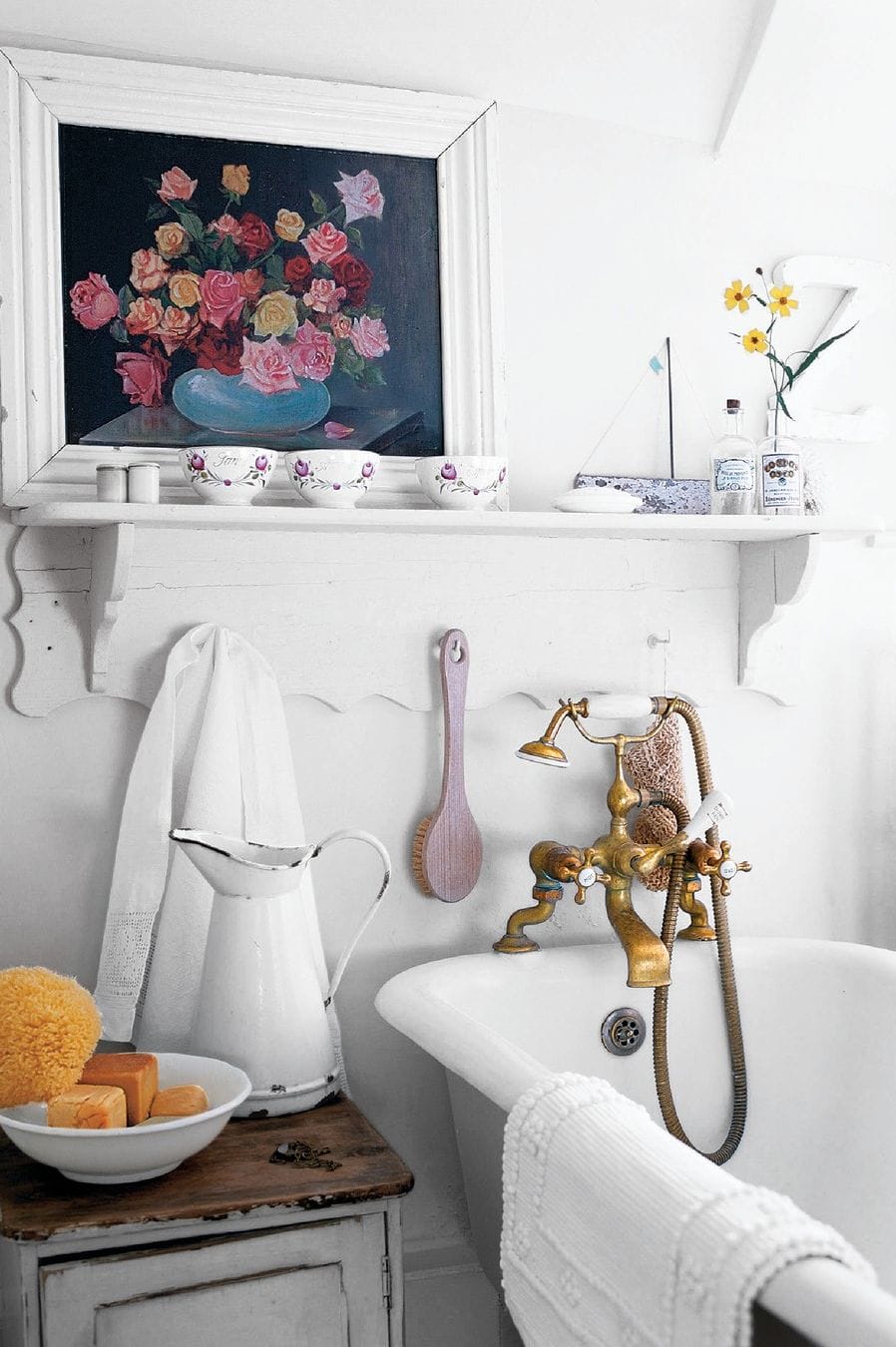 The bathroom is often overlooked as a space for displaying your most prized possessions. Put those “ugly walls” to good use by hanging up artwork, dishware, and bath products you’ve collected over the years!