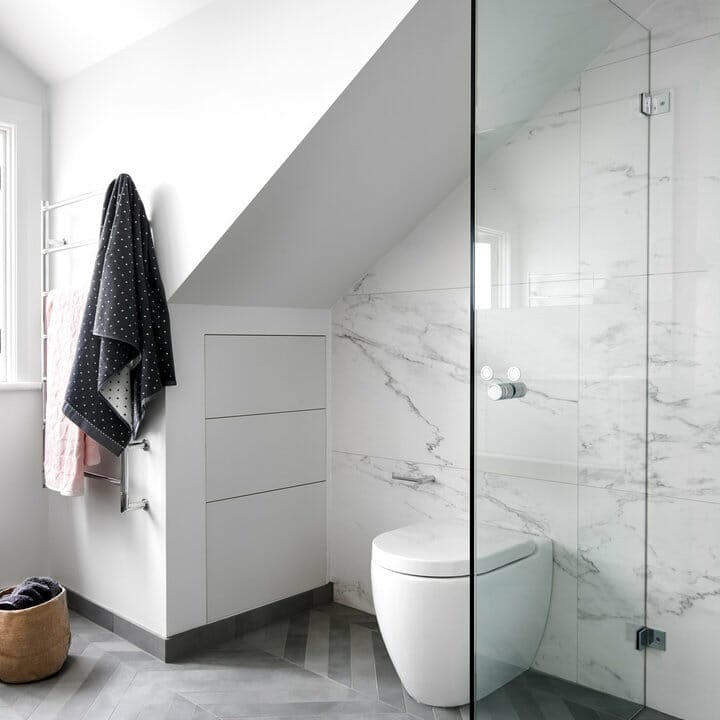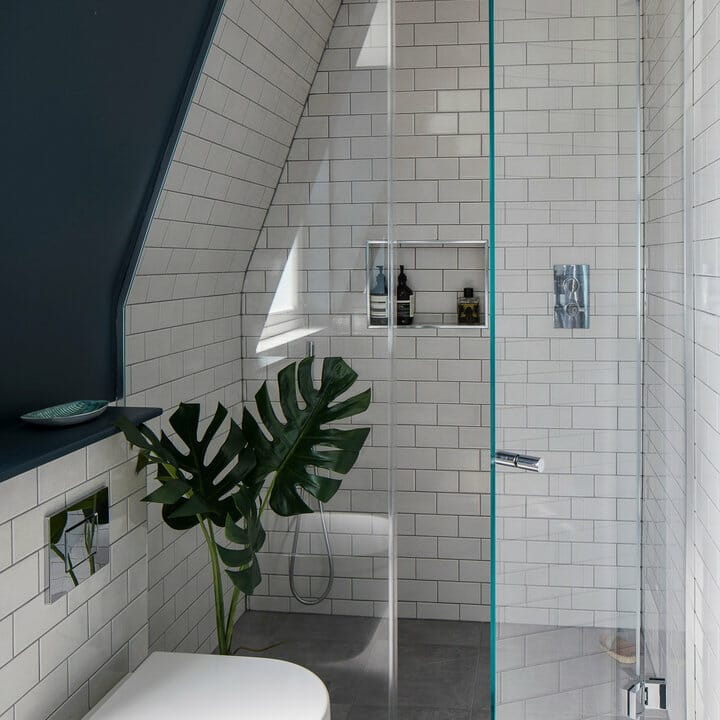 Consider installing the same tiles you use for the flooring to the shower enclosure to create the effect of continuity.
