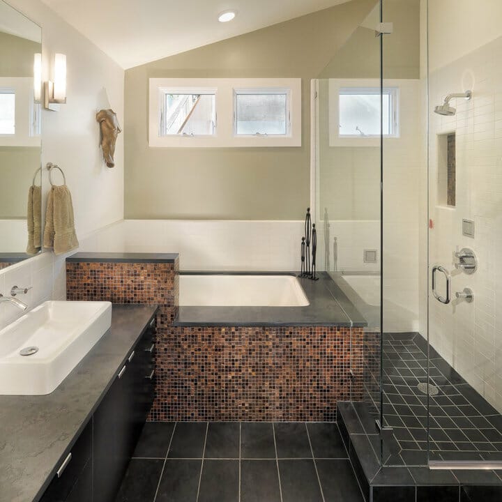 Marrying the contemporary charm with a traditional look can be a good idea if you do it right, just like these small master bathroom ideas.