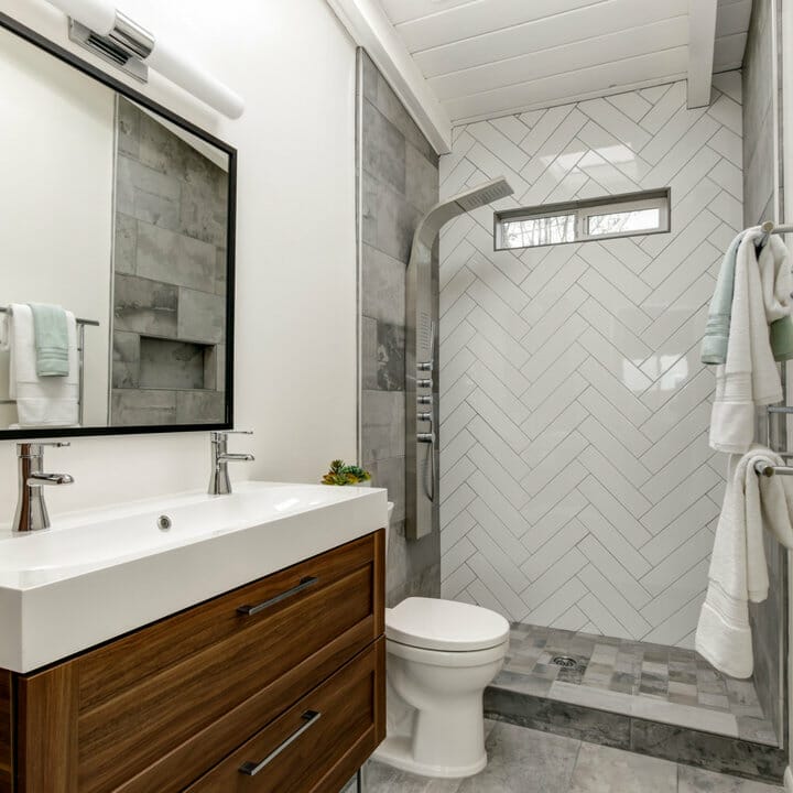 Another way you can use to carve out a traditional look is by installing subway tiles in your bathroom.