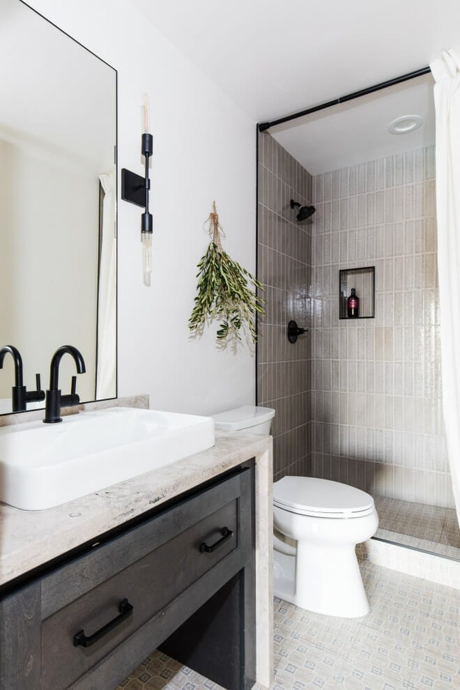Visually, this is already interesting because the small subway tiles provide a great pop of texture on the shower walls.