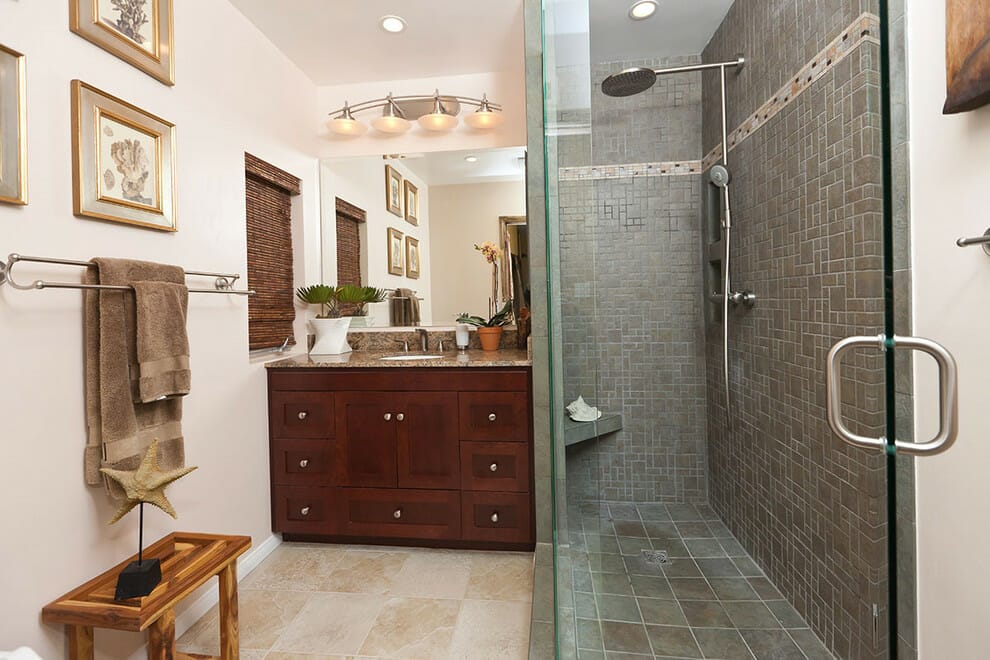 It is easy to add personality to your doorless walk-in shower. If bold colors are not your style, go with a more subtle tone like cream or beige.
