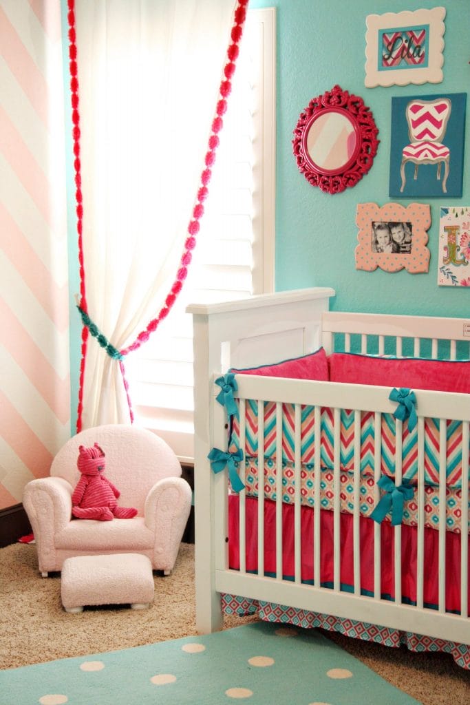 If you want to break guidelines, paint the baby girl nursery walls turquoise. The color sends out a happy ambiance.