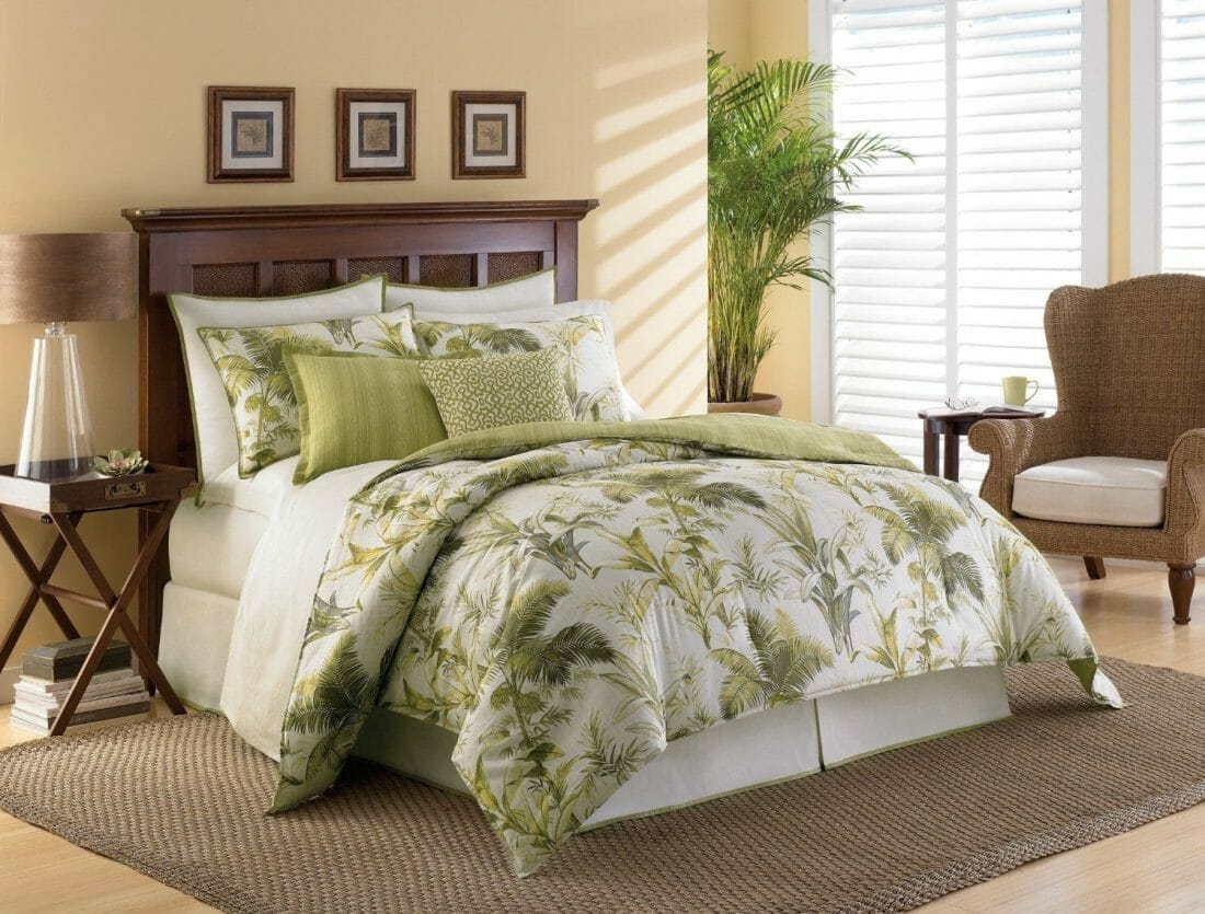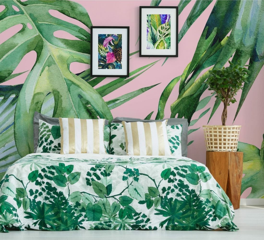You do not require to shield the whole walls with a forest mural. Investing in botanical bedding and duvet cover would be enough. You can also place Areca Palm in the corner to accentuate the style.