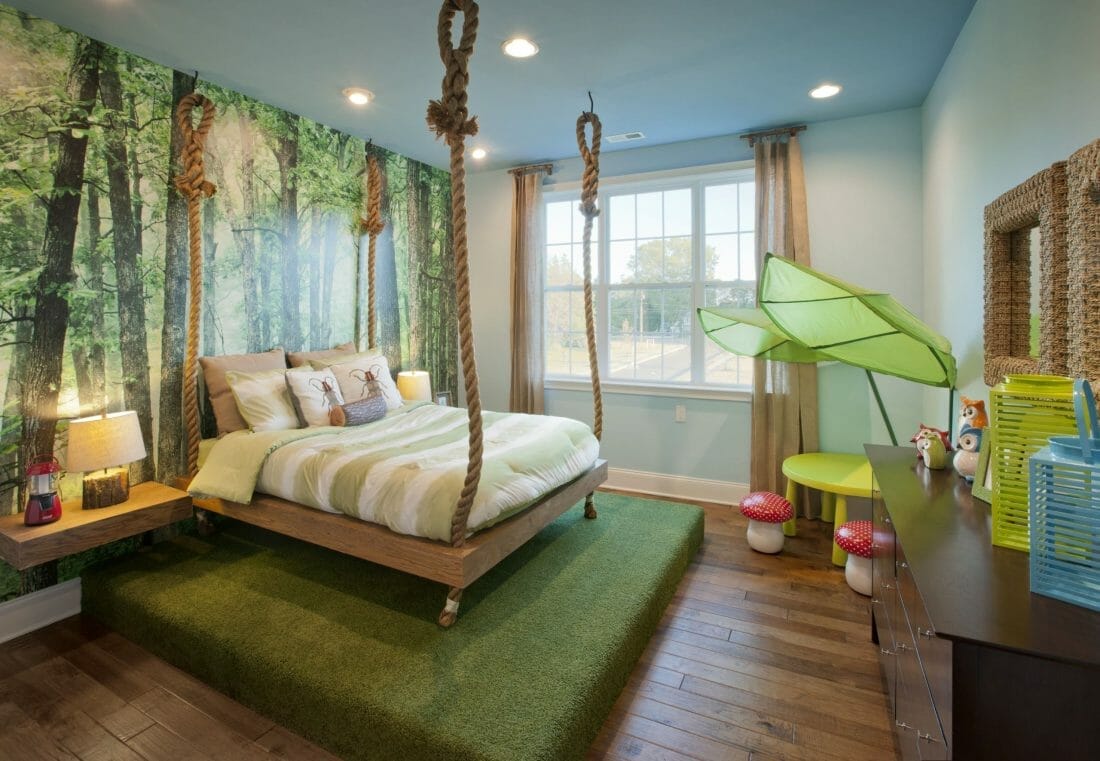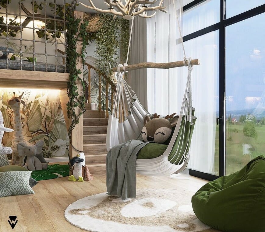 14. Forest Themed Bedroom with Hanging Bed