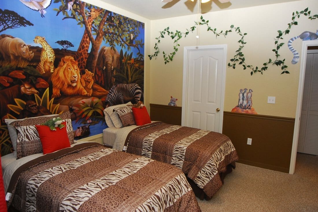This bedroom will remind you of the wildlife in Africa or even that prominent movie from Disney – The Lion King.