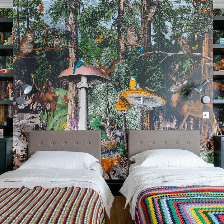 Wallpaper is extremely versatile. It comes in a vast array of designs, making it easier for anyone to carve out a certain style, including a forest themed bedroom.