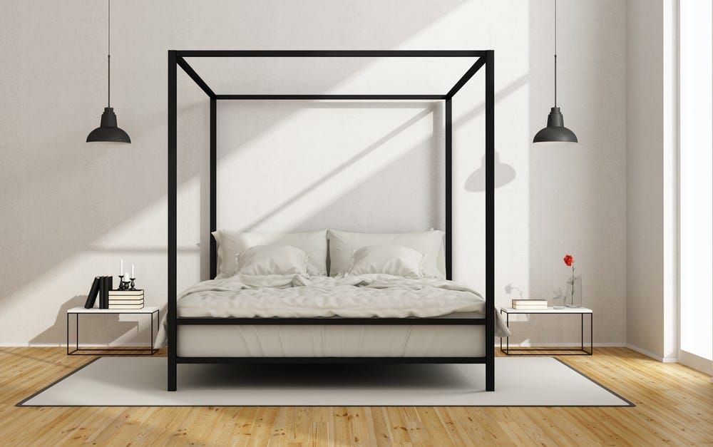 Whether or not you and your spouse are newlyweds, this romantic minimalist bedroom is worth to try. Place the four-poster bed in between a couple of sleek bedside tables and pendant lights.