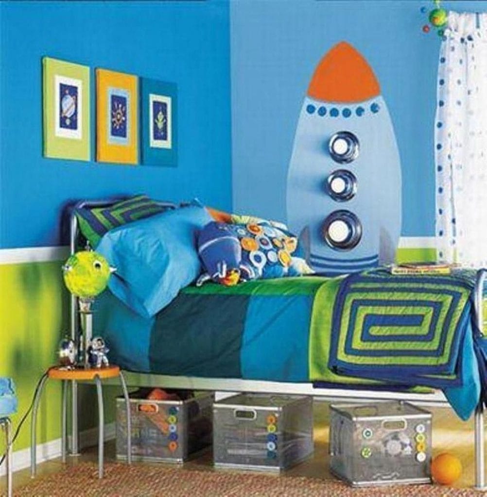 You can start the room decorating project by buying astronaut suits, constellation wallpaper, planet ornament, telescope, spaceship, and rocket-shaped units.