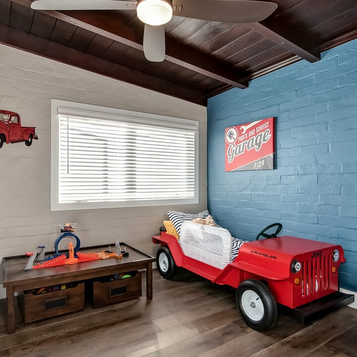 Fast and Furious saga might be the inspiration of this Cars bedroom, you know, with the look of garage mixed workshop and all.