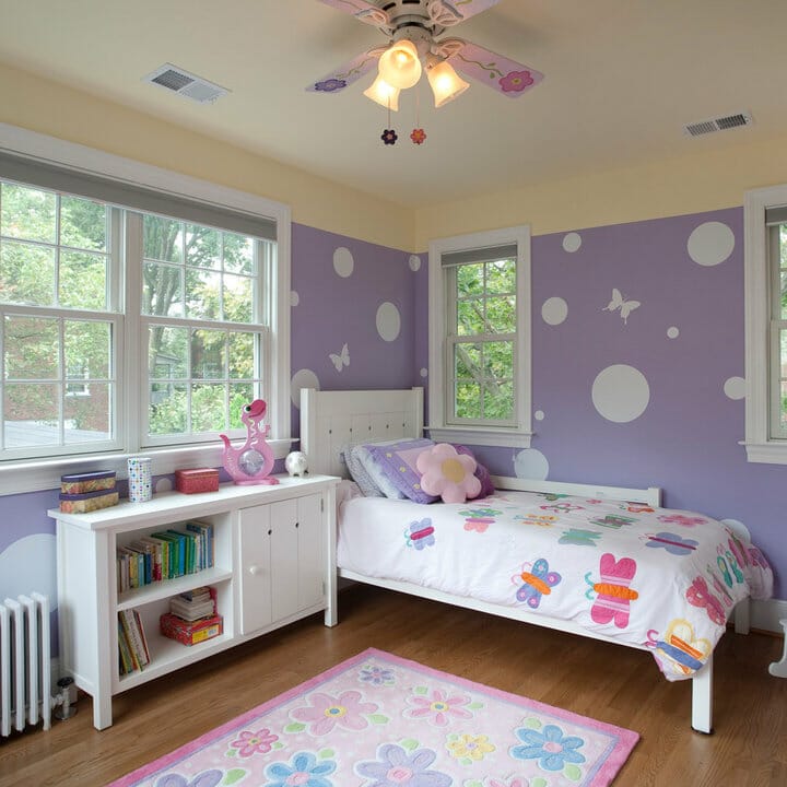 Purple is almost on the same level as pink in a girl’s world. This color has swooned countless little daughters and become the main attraction in their rooms.