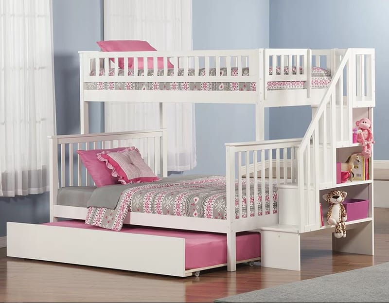 When space is at a premium, triple bunk beds are perfect. Those furniture pieces feature two beds on top of the bottom bunk. They can accommodate three kids in the same footprint. Additionally, they offer fun and great value.