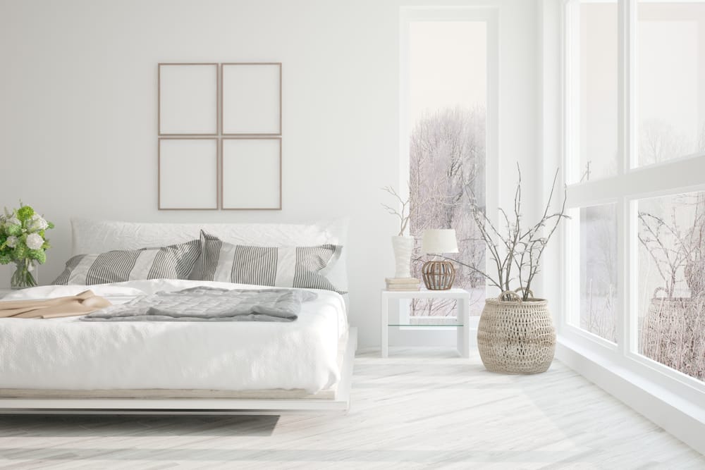 Love the look of an all-white bedroom? This idea is for you. The white color palette makes the resting space appear open and airy.