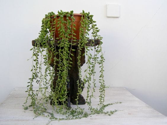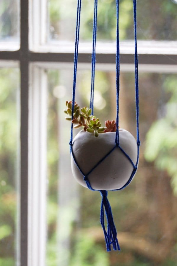 Do you have limited space? Fret not. Grow your succulent in a clay pot. Then, use a blue rope to support the potted plant. Lastly, hang it from the ceiling.