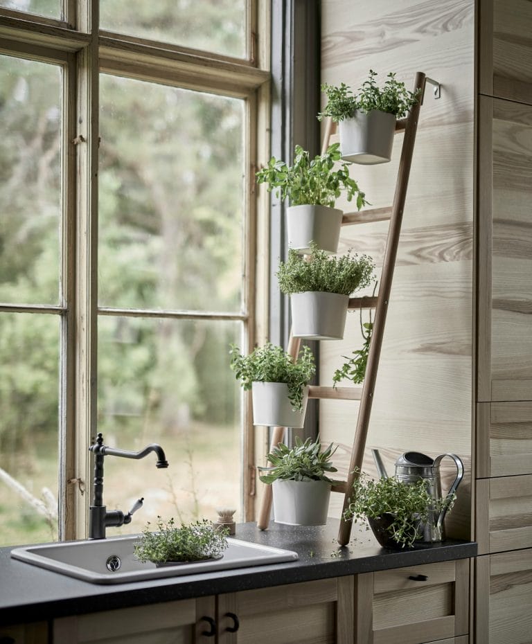 Do you want to make a vertical garden in your kitchen? This ladder plant stand is exactly for you. You can mount the plants on each step.